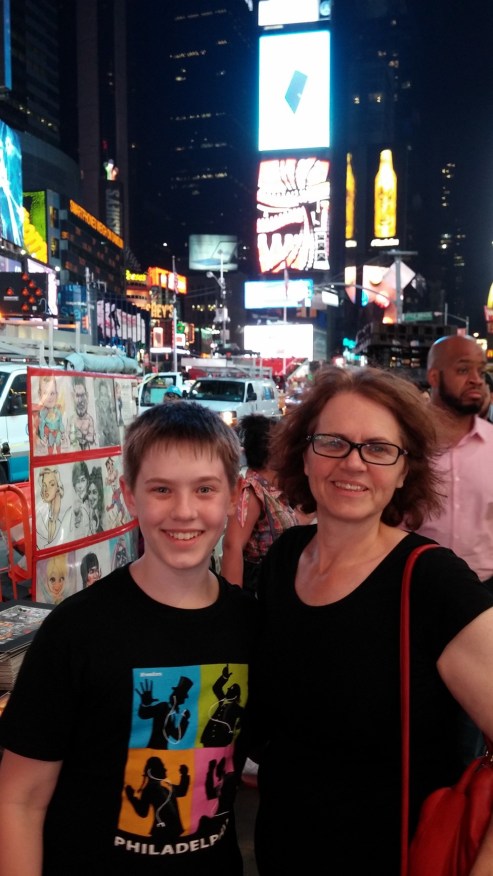 Standing in Times Square (there is nowhere to sit).