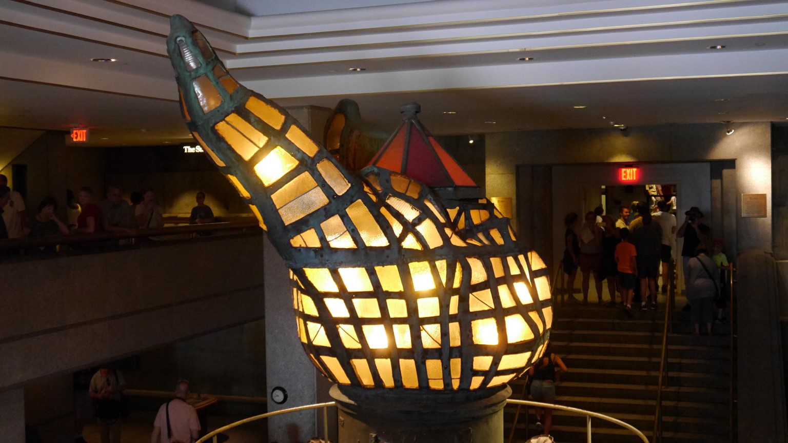 We were fortunate to get pedestal tickets which allowed us to visit the Statue of Liberty museum and climb to the top of her pedestal base. The museum had many fascinating exhibits including the original clay models of the Statue as well as her original iron skeleton which had to be painstakingly replaced piece by piece over decades with stainless steel so it wouldn’t rust. The museum also had Liberty’s original torch which had to be replaced early on as it never worked properly.