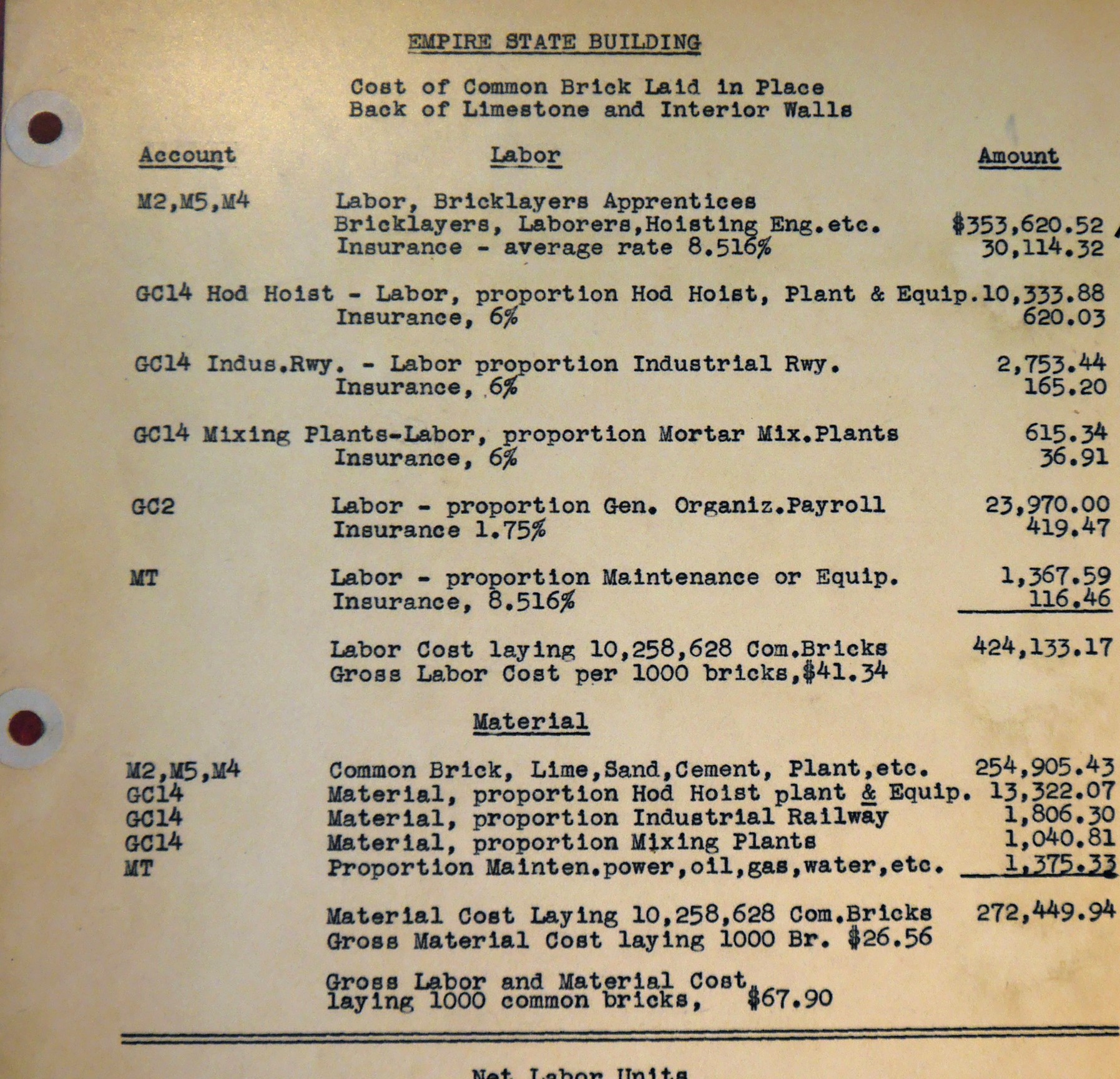 The bill for the building in 1931.