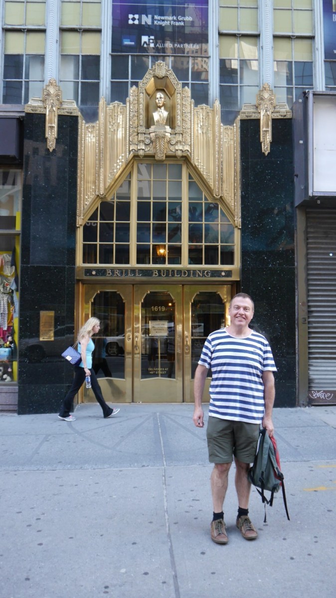 Standing outside the famous Brill Building, the songwriter sweatshop that gave us Carole King, Neil Diamond, Burt Bacharach, Ellie Greenwich, Paul Simon and many other amazing writers. Paul Simon still has his office in the building.