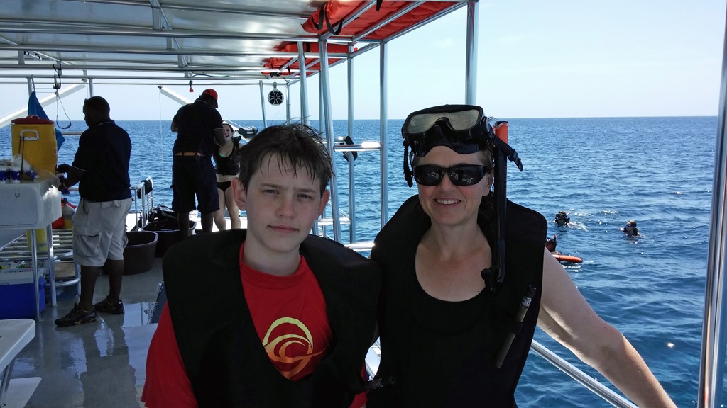 The BOSS experience was great.   I saw fish and coral formations as I amiably putted along in the warm tropical water.  At one point we ran into a bloom of jellyfish (bloom is the collective noun for jellyfish) which was kind of cool but then kind of creepy when we had to ride through them.  The blubbery feeling of the jellyfish on my bare legs and hands was a bit unpleasant but at least my face was protected by the diving helmet. While I didn’t get stung, a couple of people did complain of stings afterwards. At least they weren’t fatal stings.