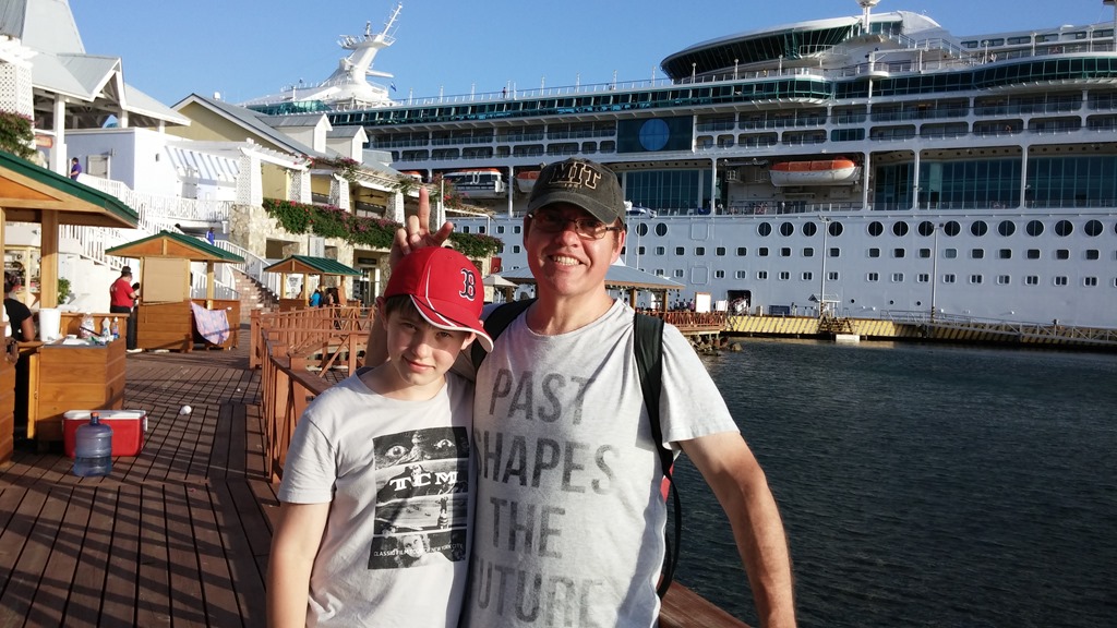 After braving the aftermath of Hurricane Bertha in Florida we headed towards its origin in the Caribbean.  We traveled there in style aboard the Royal Caribbean Vision of the Seas cruise ship. This was heaven for Harrie.  After putting up with the olds for so long, he finally got to play with other kids at the ship’s teen club.  I think this was the moment that Michelle and I realised that we had a full-blown teenager on our hands; staying up late and being embarrassed when he was sighted with us.