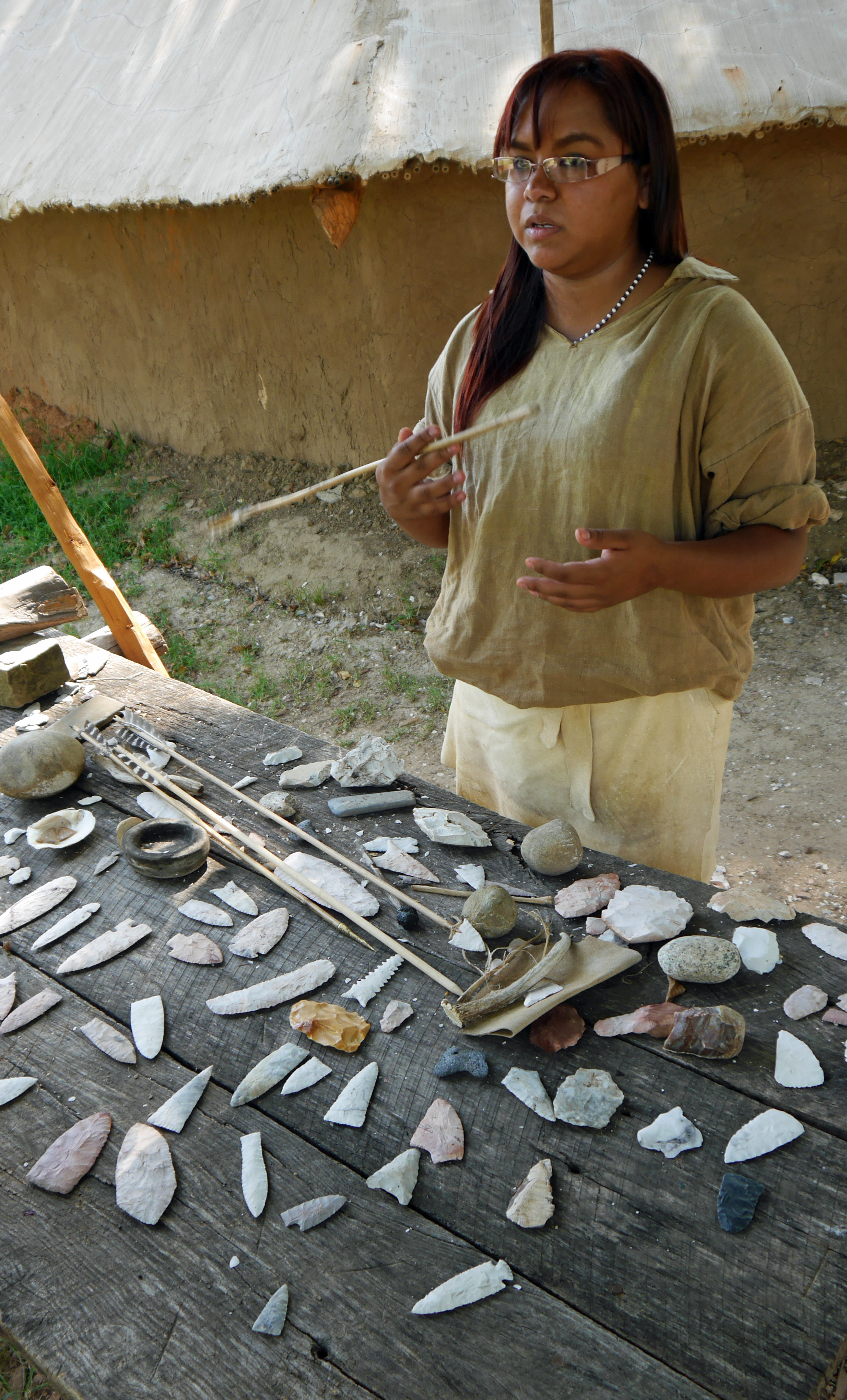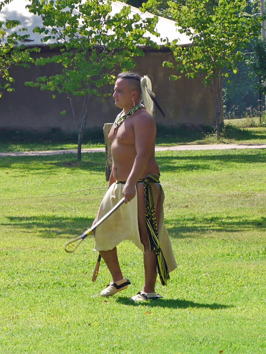 Two Cherokee indians played a short game of stickball for us.  While you might not know stickball, you probably do know Lacrosse which was invented after a French missionary saw an Iroquois tribe play stickball in 1637.   The missionary, Jean de Brébeuf, wrote about the game and called it “la crosse” which is French for “The Stick.”  The French Canadians started to develop rules to play a white man’s version.  You can see an old documentary on Stickball here.