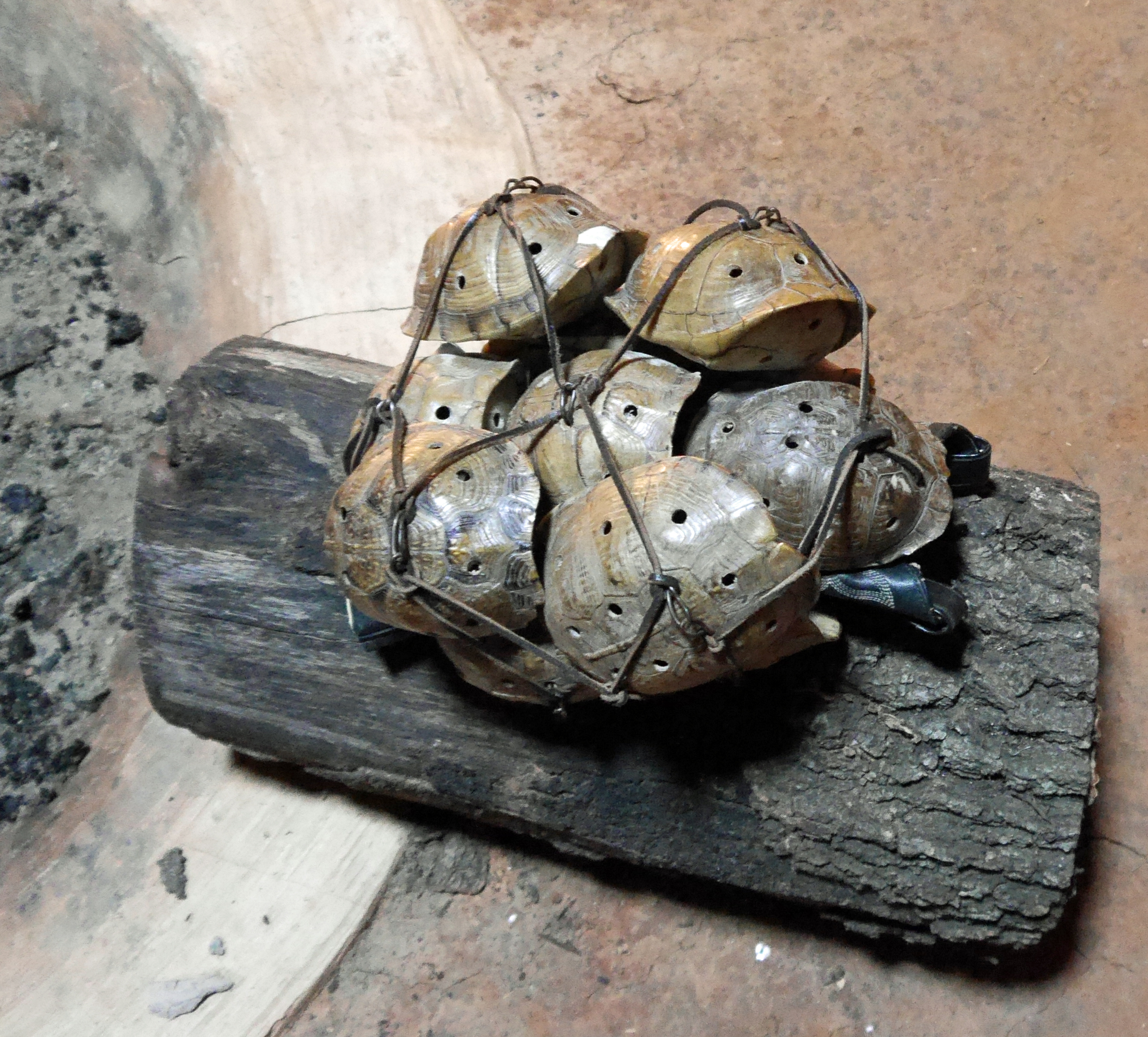 A Cherokee turtle shell shaker. These were attached to each leg and used to create percussion during tribal dances.