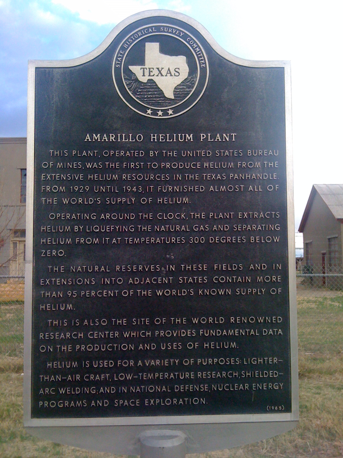This is taken from the Internet as we didn’t get to visit the Amarillo Helium plant.   Up until 2010, Australia got most of its helium from the US.  Then in 2010, Mining company BOC  found helium deposits in Darwin and set up a helium plant which now supplies most of Australia’s helium needs.   Also, the statement of Amarillo having 95% of the world’s known helium supplies was accurate in 1965 when the sign was made.  Today’s revised estimate is that Amarillo holds a, still respectable, 70% of world supplies.