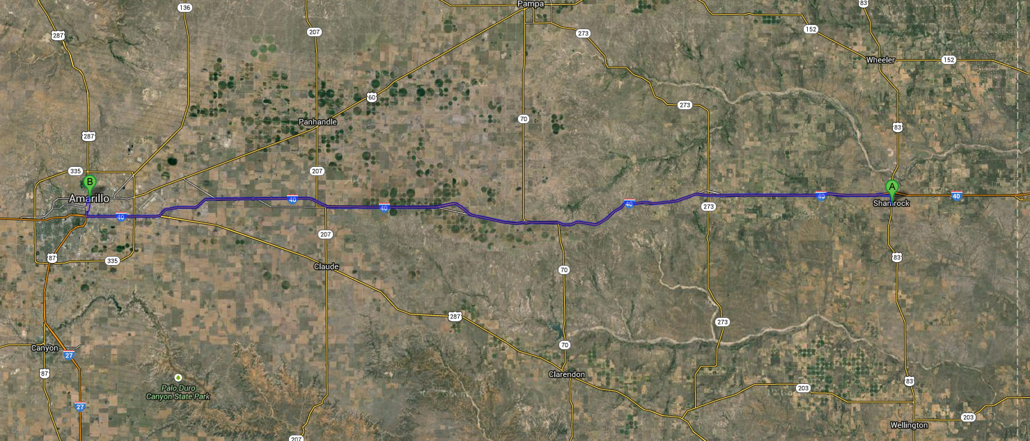 Our trip from Shamrock to Amarillo.